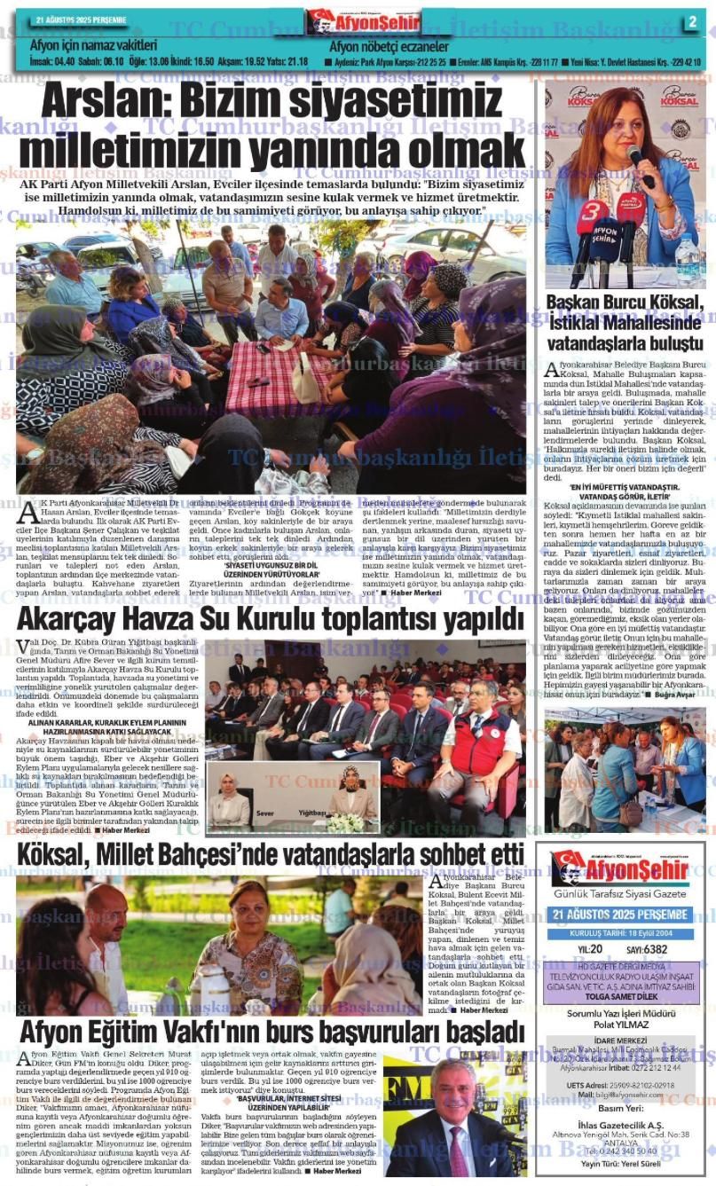 AFYON EGITIM VAKFINDAN TÜRKELI GAZETESINE ZIYARET